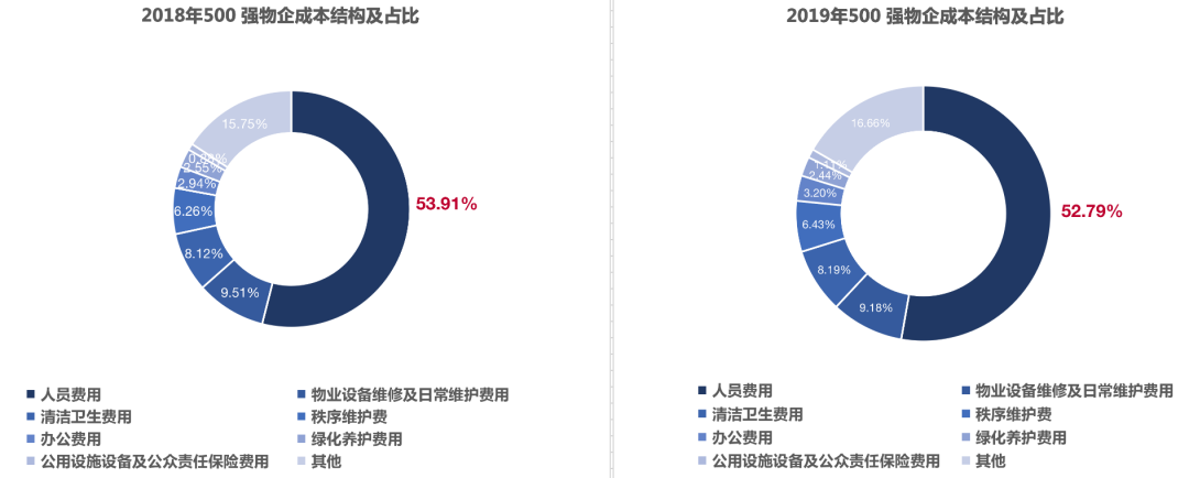 2018-2019 年度500 強物企成本結構及占比變化