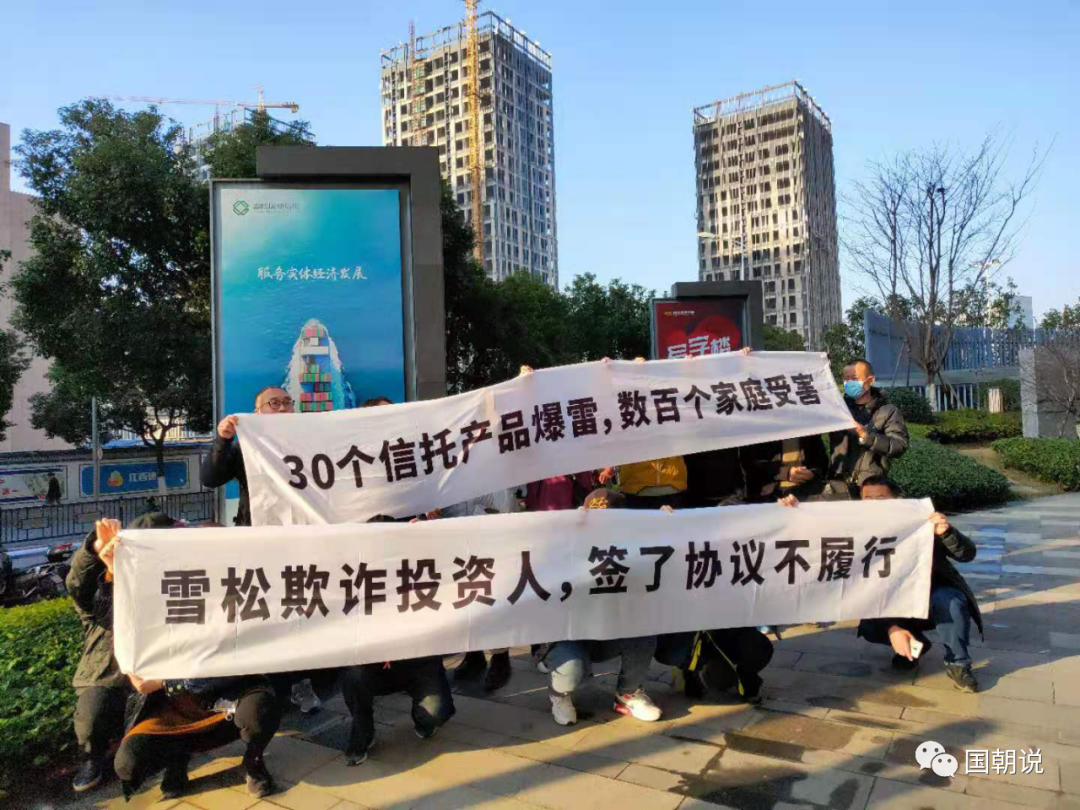 因雪松信托在2020年12月31日未能按照此前簽署的轉(zhuǎn)讓協(xié)議兌付歷史遺留逾期產(chǎn)品(涉及20余個(gè)項(xiàng)目),幾十位投資人曾在一個(gè)月前到雪松信托南昌總部討要說法。雪松信托高管人員對(duì)投資人代表表示,此前雪松集團(tuán)旗下廣州匯華和投資人簽署的《協(xié)議書》無效,引發(fā)投資人集體拉橫幅維權(quán)。