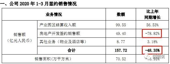 實(shí)際上華夏幸福資金問題早就是久病纏身,據(jù)華夏幸福2020年一季報(bào)顯示,截止2020年3月底華夏幸福短期債務(wù)(短債+一年內(nèi)有息負(fù)債)達(dá)到745.72億元,相較2019年底猛增了140多億元,而貨幣資金只有464.35億元,若考慮到受限資金,現(xiàn)金已難以覆蓋短期債務(wù),資金鏈緊張可見一斑。與此同時(shí),華夏幸福對(duì)外披露2020年一季度銷售業(yè)績(jī),報(bào)告期內(nèi)實(shí)現(xiàn)銷售收入157.72億元,同比下降48.35%。
