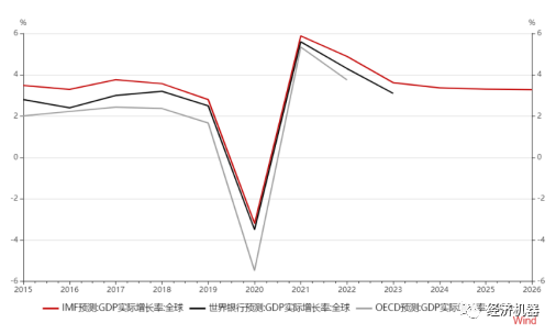 3)未來一兩年內(nèi),海外經(jīng)濟增速趨于回歸疫情前平均水平。主要機構預測全球GDP增速將于2021年達到高點后逐步回落,2023年左右恢復至疫情前3.5左右的平均增速,不會出現(xiàn)急劇的放緩(圖5)。