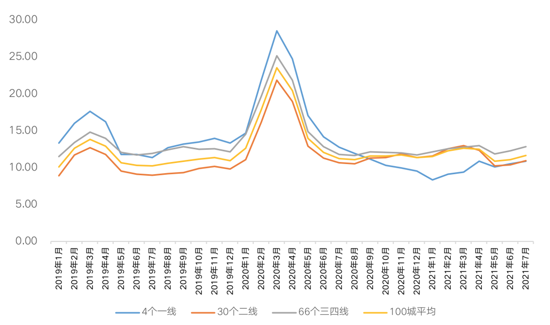 備注:2021年7月商品住宅庫存去化周期=2021年7月末商品住宅庫存量/近3月商品住宅成交面積均值