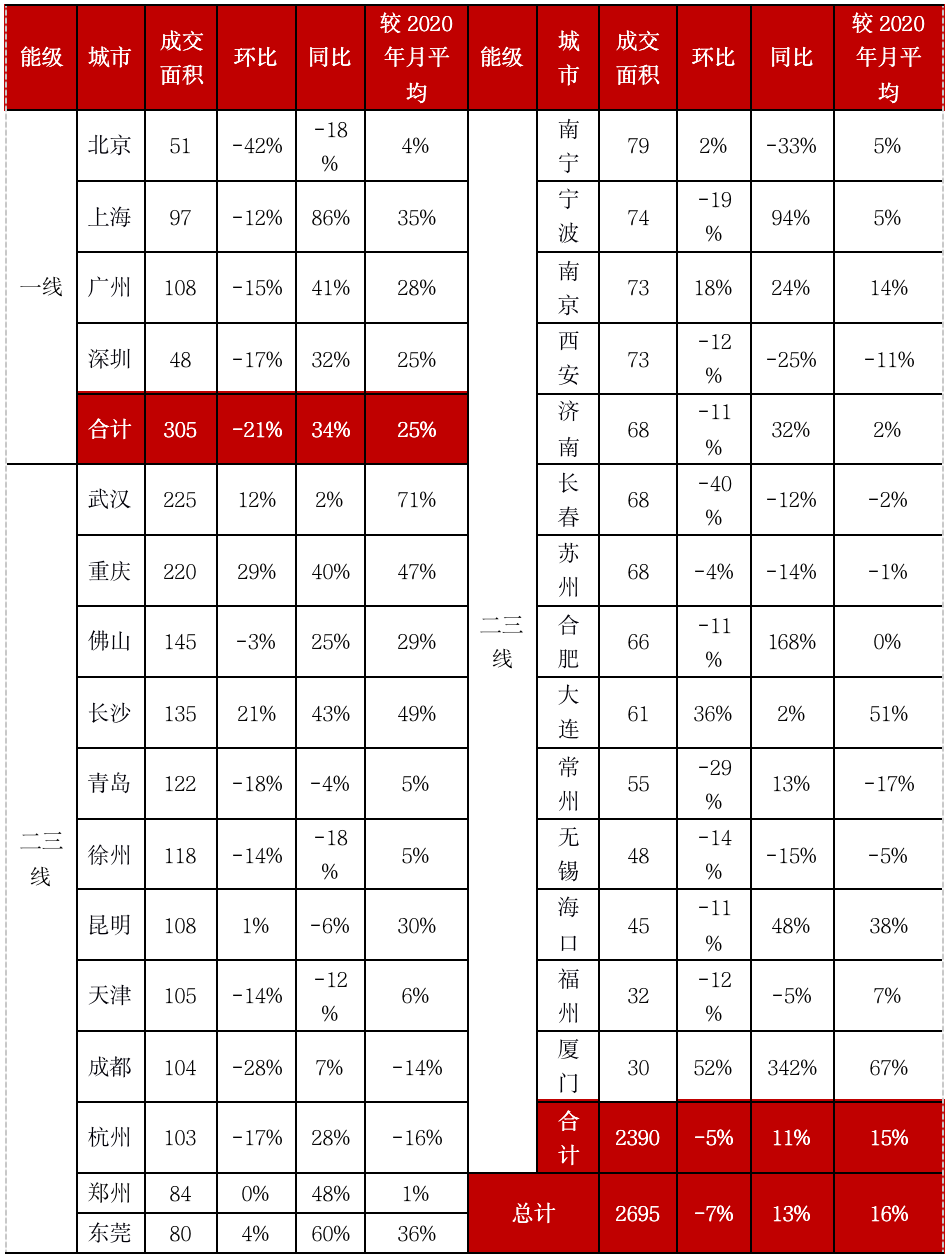 備注:上表中城市成交量為本月根據28日左右數據預估得到