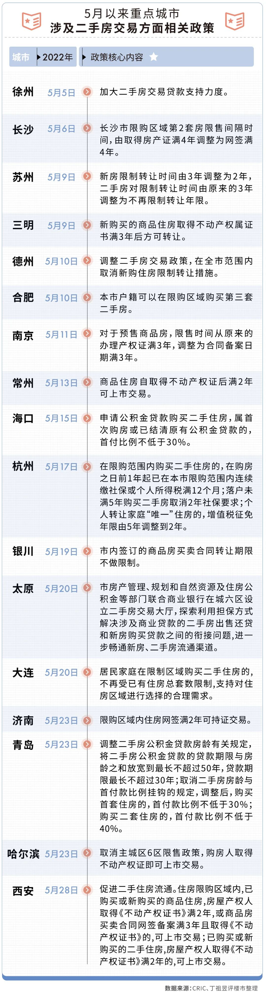 5月,97個省市迎來樓政策松綁,其中二手房政策寬松的城市就有17個,占了總量的接近五分之一。