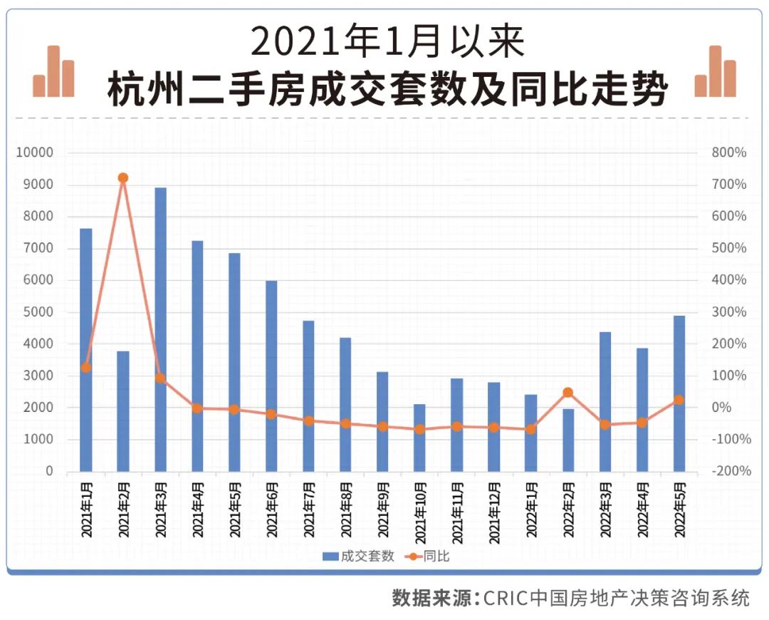 從成交來看,杭州5月二手房成交套數突破了4800套,環比增25.5%。這一數據是去年6月以來新高點,但相較于去年5月的6853套仍有一定的差距。