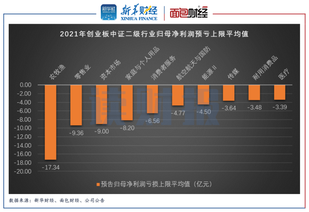 圖2:2021年創(chuàng)業(yè)板中證二級行業(yè)歸母凈利潤預(yù)虧上限平均值