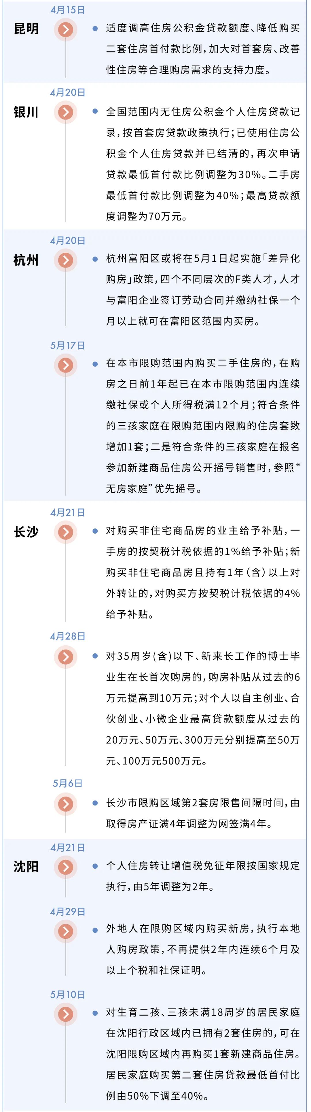 接下來,5月下旬到6月仍是政策窗口期,已出新政的城市不排除會進一步松綁。
