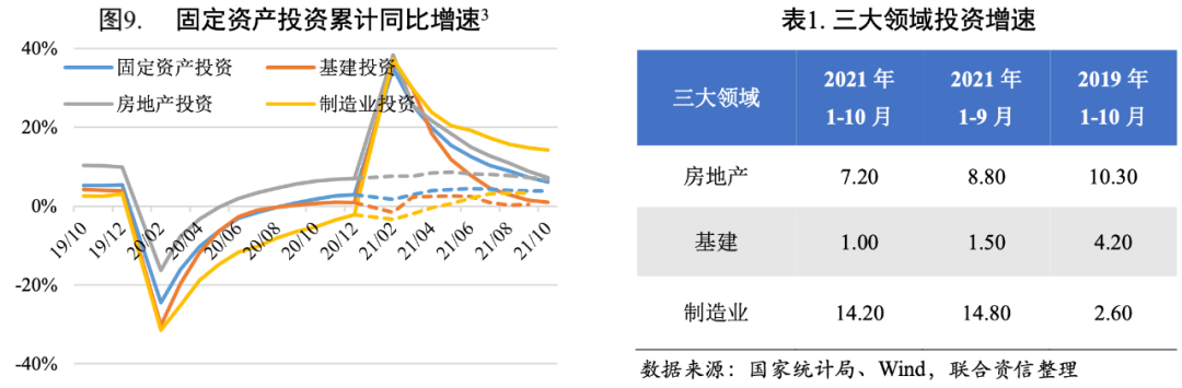 10月22日,財政部相關(guān)負責人在財政收支情況新聞發(fā)布會上表示,2021年新增專項債券額度盡量在11月底前發(fā)行完畢。聯(lián)合資信認為,11月專項債發(fā)行加速,為“今年底明年初形成實物工作量”提供資金支撐,基建投資會有所回升,但受制于地方政府債務(wù)管理和項目審批趨嚴等因素制約,預(yù)計上升幅度有限。