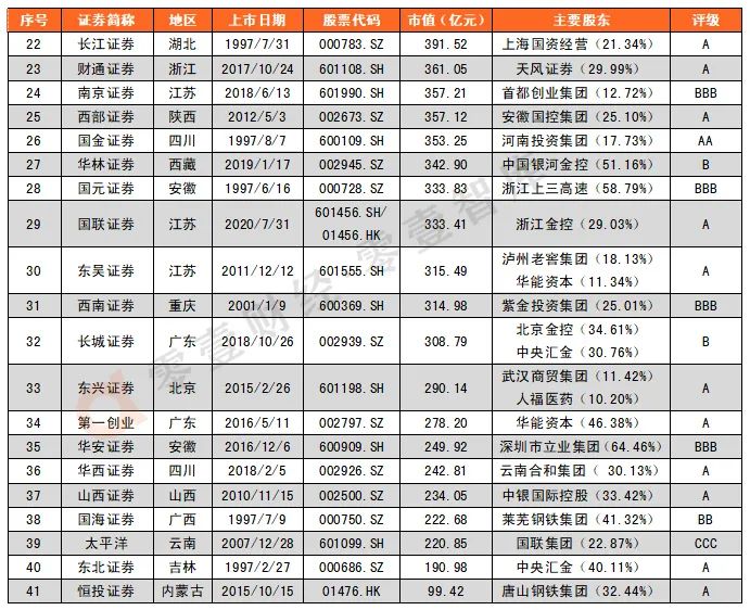 表1:已上市券商名錄(41家)