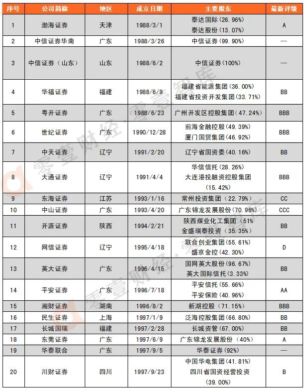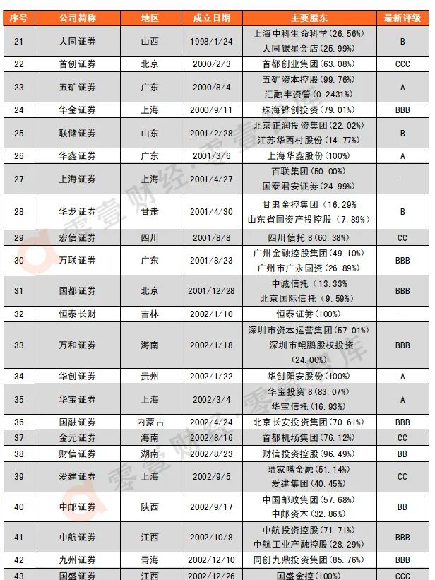 原標題: 券商及其三類子公司大全