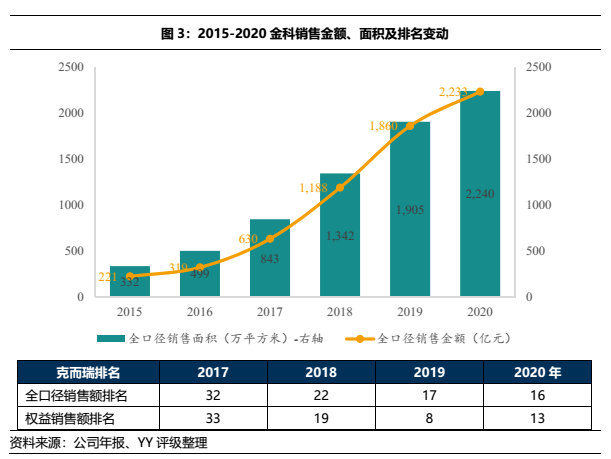 起步于重慶的金科近年來規(guī)模擴張迅速,2010年銷售額破百億,2018年破千億,2020年實現(xiàn)全口徑銷售額2,233億,由千億俱樂部到兩千億俱樂部只用了三年。