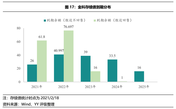 假設(shè)回售,公司債券集中于2021年和2022年到期,2021年需償還債券共計約61.8億元,參照2020年6月末賬面非受限貨幣資金356.79億元,對債券保障較好,但是考慮到調(diào)整后的現(xiàn)金短債比約0.96,處于勉強覆蓋的程度,因此我們對于公司償債能力進行簡單估算。