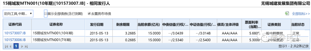 無錫城建發展集團有限公司是無錫市國資委100%控股企業,最新主體信用等級為AAA(大公國際)。無錫城發集團的存續債券金額為30億元,主要是兩只中期票據。此次太湖新城不再納入無錫城發的合并報表之后,預計會對其產生一定的影響。