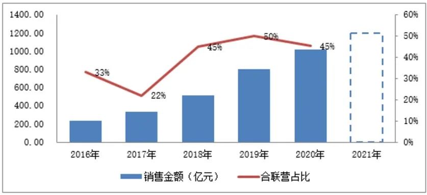 然而其中合聯(lián)營(yíng)公司部分的銷售金額為460.93億元,占比45%