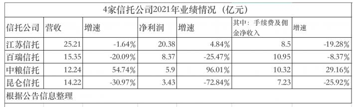 來(lái)自21世紀(jì)經(jīng)濟(jì)報(bào)道顯示,已有4家信托公司財(cái)報(bào)同步在相關(guān)上市公司公告中,分別為、、、。