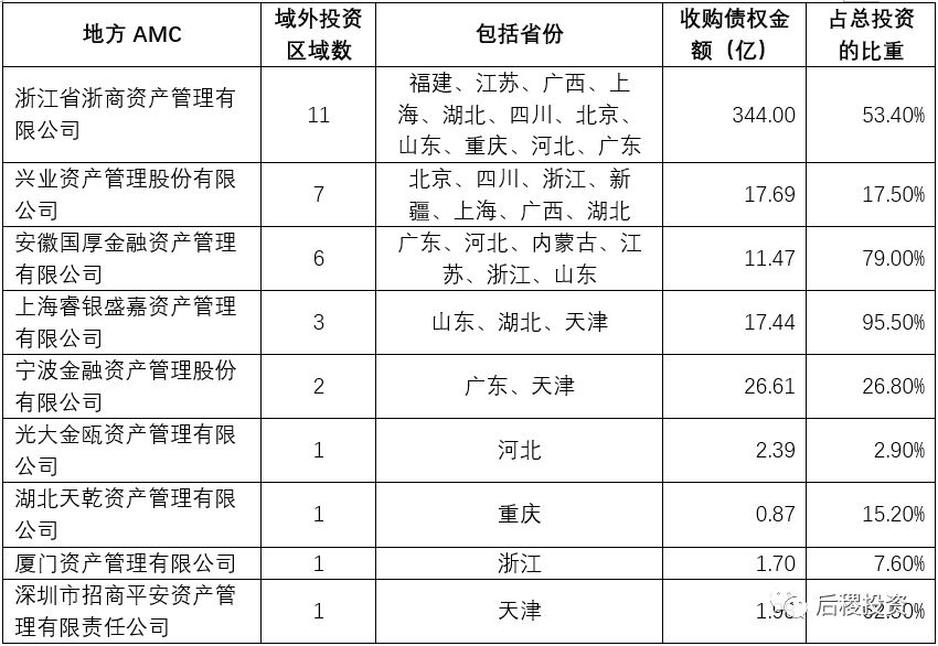 1、地方AMC區域外市場布局情況