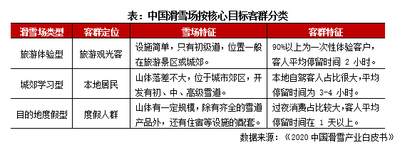 冰雪場地主要涵蓋滑冰場與滑雪場等形態(tài),由于當(dāng)前新增滑冰場多為商業(yè)綜合體形式,基本交由冰場品牌方進行承租運營(少數(shù)由商業(yè)體自建并自主運營,如華潤旗下的冰紛萬象系列),所以暫不在本文的參照范圍內(nèi)。國內(nèi)滑雪場按核心目標(biāo)客群可分為三類:旅游體驗型、城郊學(xué)習(xí)型及目的地度假型,據(jù)《2020中國滑雪產(chǎn)業(yè)白皮書》數(shù)據(jù)顯示三類雪場占比75%、22%及3%,新建雪場中目的地滑雪度假區(qū)呈上升趨勢,而旅游體驗型滑雪場則出現(xiàn)下滑趨勢。