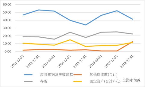 公司資產(chǎn)結(jié)構(gòu)中流動(dòng)性資產(chǎn)占絕大部分,2018年公司流動(dòng)資產(chǎn)占總資產(chǎn)比高達(dá)86.03%,而公司流動(dòng)性資產(chǎn)中主要由應(yīng)收票據(jù)和應(yīng)收賬款、其他應(yīng)收款構(gòu)成,且這三項(xiàng)的比例逐年上升,這反映出公司在產(chǎn)業(yè)鏈中的弱勢地位。
