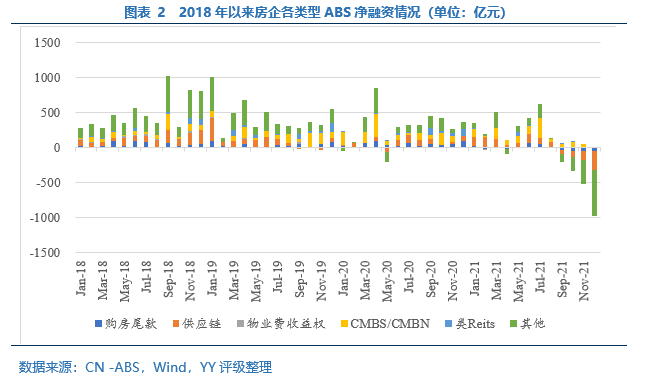 2021年8月以來,隨著房企債務違約的頻發,市場對地產行業尤其是民營房企的風險偏好迅速降至“冰點”,疊加預售資金等政策難見放松,市場預期急轉直下,9月開始房企ABS凈融資額由正轉負,且凈融資缺口在逐漸走闊。