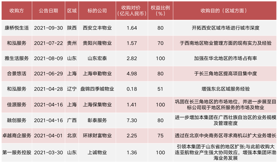 圖:2021年以來上市物企在增值服務領域收并購事項一覽