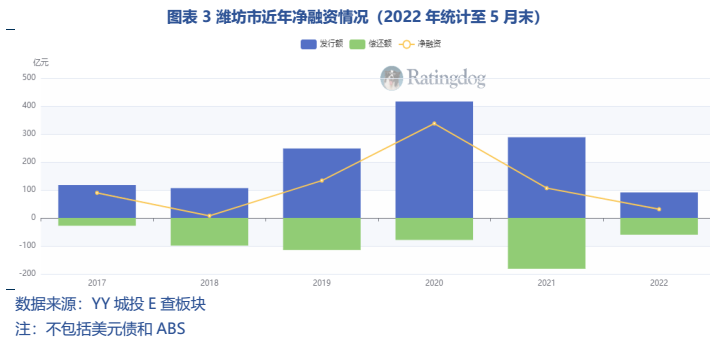 濰坊作為城投網紅城市,具體到數據層面的體現包括:
