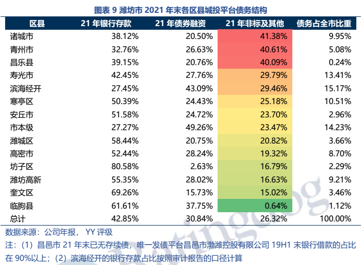 (1)區域金融資源并不弱(21年末金融機構存款余額1.12萬億元,省內排名第三),但非標融資占比很高,21年末非標融資占26.32%,好在21年已經有一定壓降。