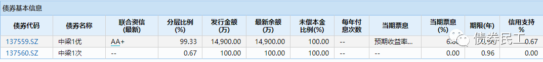 中梁集團為香港上市公司(股票代碼2772.HK),實際控制人為楊劍,國內主體信用評級為AA+。經初步查詢,目前在國內只有1.5億元資產證券化產品發行記錄。