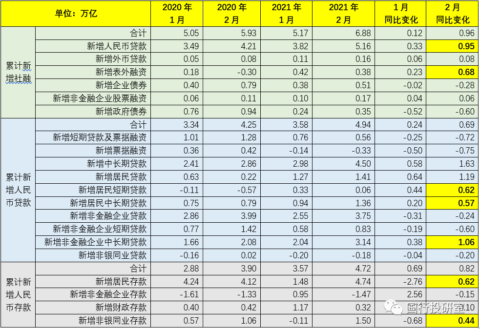 2021年3月10日,央行發布今年2月金融統計數據。之前我們在分析1月金融統計數據時曾得出“實體經濟融資需求很強勁”的結論(實體經濟融資需求很強勁),考慮到可能存在的季節性因素,那么1-2月的數據分析結論可能更有價值。四個結論大致如下: