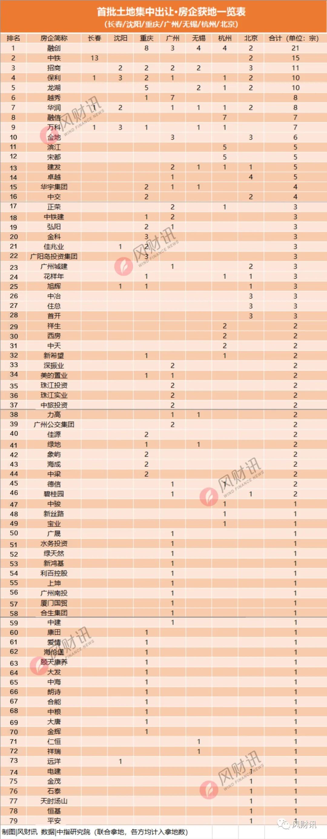 這次集中供地有點意外的是,國企/央企并沒有想象中的那么強勢。