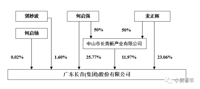 從股權結構看,何啟強和麥正輝作為一致行動人,是長青集團的實際控制人,二人直接持股比例分別為25.77%和23.06%。