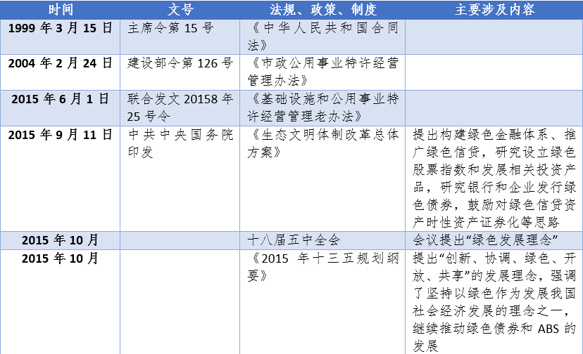 能源基礎(chǔ)設(shè)施是國家關(guān)注的重點(diǎn)項(xiàng)目,對如何可持續(xù)的發(fā)展能源基礎(chǔ)設(shè)施建議以匹配快速增長的能源消費(fèi)和龐大的工業(yè)投資尤為重要。“一帶一路”戰(zhàn)略的提出以及城鎮(zhèn)加速化帶來的公共基礎(chǔ)設(shè)施共需壓力,促使經(jīng)濟(jì)發(fā)展對資金需求不斷增加,如何拓寬融資渠道、創(chuàng)新融資模式成為研究的新課題。為了更好的促進(jìn)能源基礎(chǔ)設(shè)施建設(shè),綠色金融應(yīng)運(yùn)而生,我國政府在各個行業(yè)廣泛推廣PPP模式及合同能源管理等綠色金融模式,并出臺了一些列輔助這些金融模式工作開展的文件與通知。