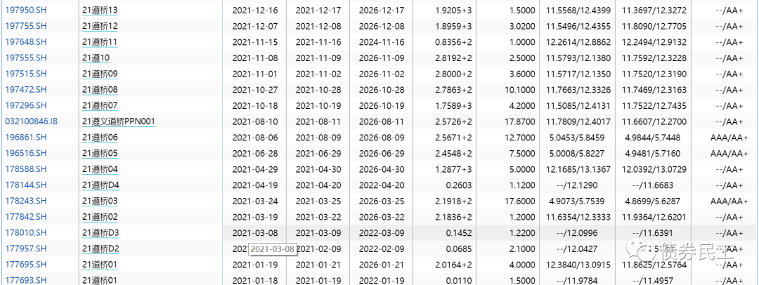 遵義道橋最近一次債券發行是在2022年1月6日發行,1月7日起息的“22遵橋01”,發行規模為1.69億元。值得關注的是,遵義道橋擬于2022年1月17日發行“22遵橋02”,這將是評級展望調整為負面之后的第一次債券發行。