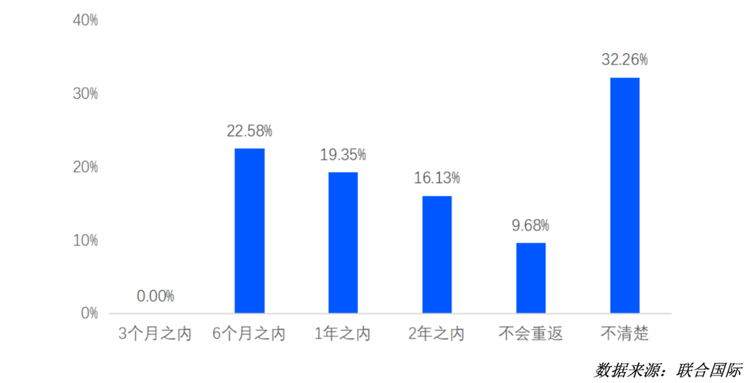 沒有受訪者認(rèn)為自己會(huì)在短期內(nèi)(即 3 個(gè)月內(nèi))重返中國(guó)房地產(chǎn)高收益美元債券市場(chǎng)。但其中41.9%的受訪者表示將在一年內(nèi)重返。值得注意的是,部分受訪者(32.3%)不確定何時(shí)會(huì)重返(見附表8)。