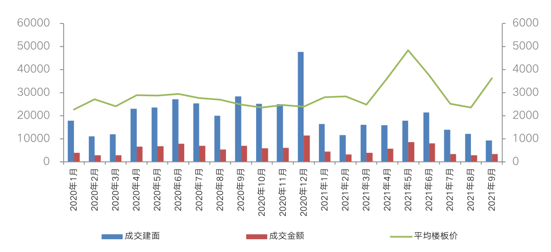 圖:2021年以來前3季度經營性土地成交量價