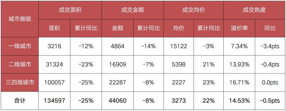 受重點城市優質高價地塊成交減少以及成交結構變動影響,疊加房企資金壓力,房企拿地積極性大幅減弱,底價成交地塊明顯增加,從而導致土地成交均價下調至低位,整體成交均價為2754元/平方米,環比下降32%。