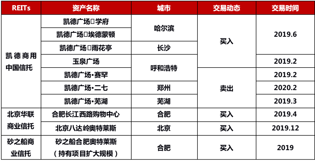 凱德中國REIT擁有12處內地資產,分別位于北京、成都、上海、呼和浩特、武漢、廣州、哈爾濱、長沙,大部分為一線及新一線城市,2019年資產買賣較為頻繁,凱德更看重新一線城市消費潛力,新購入長沙,哈爾濱等地項目并置換了呼和浩特的資產,新購入項目都位于城市核心繁華區域,交通便捷,人流密集,資產地理位置優越。