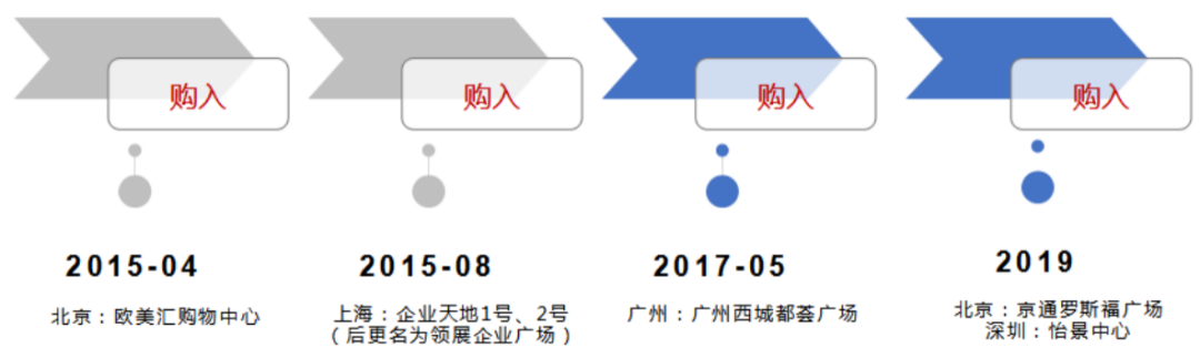 領展REIT是亞洲市值最大的REIT,從2015年開始布局內地資產,截止目前已擁有內地資產5處,皆位于北上廣深一線城市的核心位置,地理優勢非常明顯。