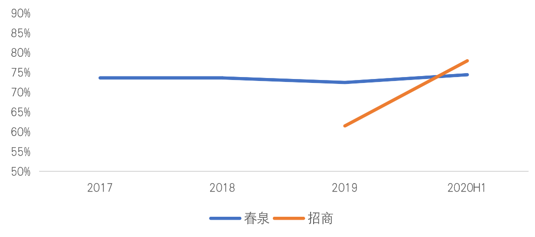 越秀REIT近兩年發力提升底層資產運營效率,今年上半年更是制定了合理有效的租賃策略應對疫情產生的沖擊,比如在武漢有針對性的吸引疫情利好行業租戶,更通過租戶優化、資產改造、財務提升等手段提升資產運營水平,平均租金得到大幅提升,REIT收入基本與去年同期持平,物業經營凈收益比率也在穩步上升,據其2020年中期報告披露,越秀的NPI率已達到78.7%。
