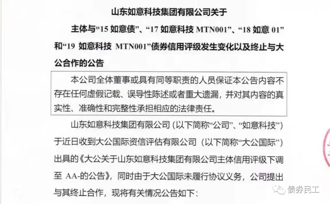 根據(jù)山東如意科技集團(tuán)有限公司(以下簡稱“如意集團(tuán)”)2021年5月31日的公告,自公司2020年3月16日終止與大公國際的評級合作之后,公司與評級機(jī)構(gòu)全部溝通完畢,沒有評級公司與公司開展評級合作。這在信用債券市場上也是很少見的了,畢竟多數(shù)債券都需要披露跟蹤評級報(bào)告。
