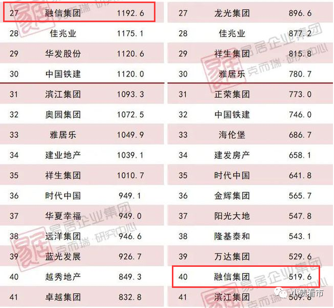 據克而瑞數據顯示,2020年融信集團以1192.6億操盤金額位居房企第27位;以519.6萬平方米操盤面積位居第40位。