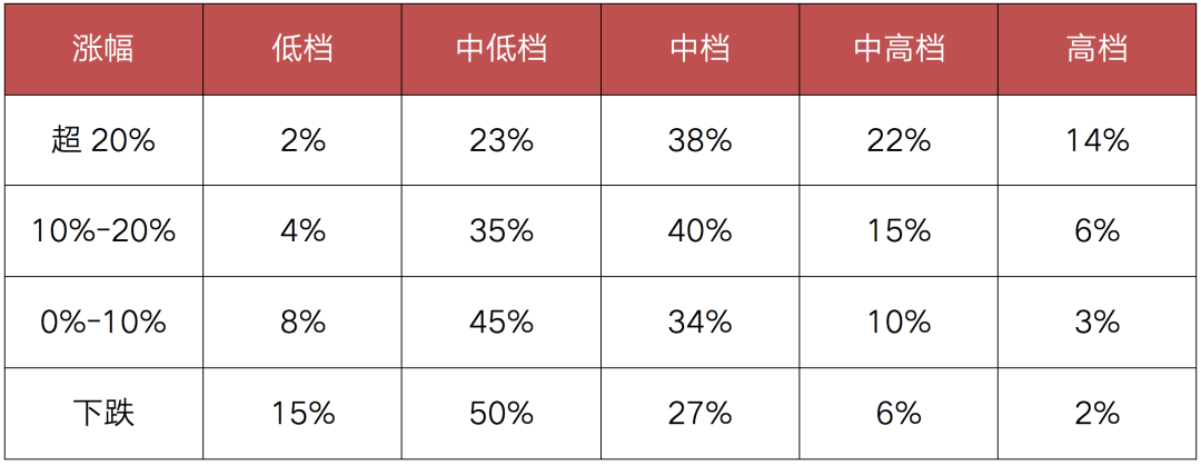 注:高檔>2倍房價中位數;中高檔>1.5倍房價中位數;中檔>1倍房價中位數;中低檔>0.5倍房價中位數;低檔≤0.5倍房價中位數