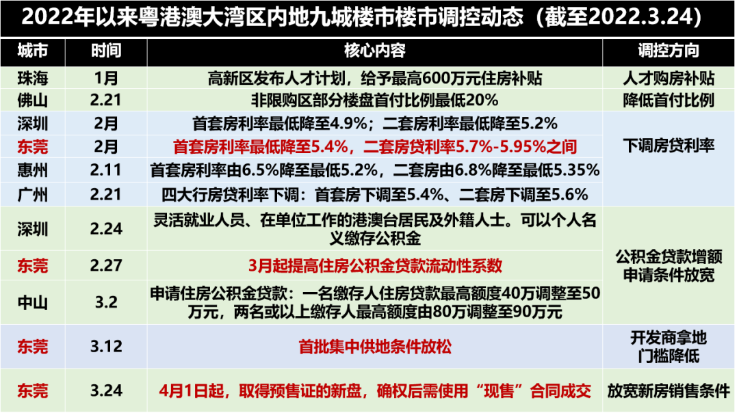 • 3月中旬,東莞發布首批居住用地出讓公告,相比去年出讓條件寬松 ①部分取消限售價格 ②部分取消無償配建要求 ③競拍保證金或起拍價下調。
