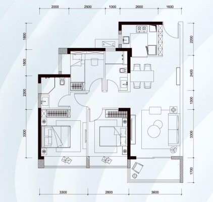 在售98平3房2廳2衛A戶型,格局方正,功能分區明確,使用率非常之高。餐廳、客廳、陽臺等公共區域連成一線,生活更為寬敞舒適。