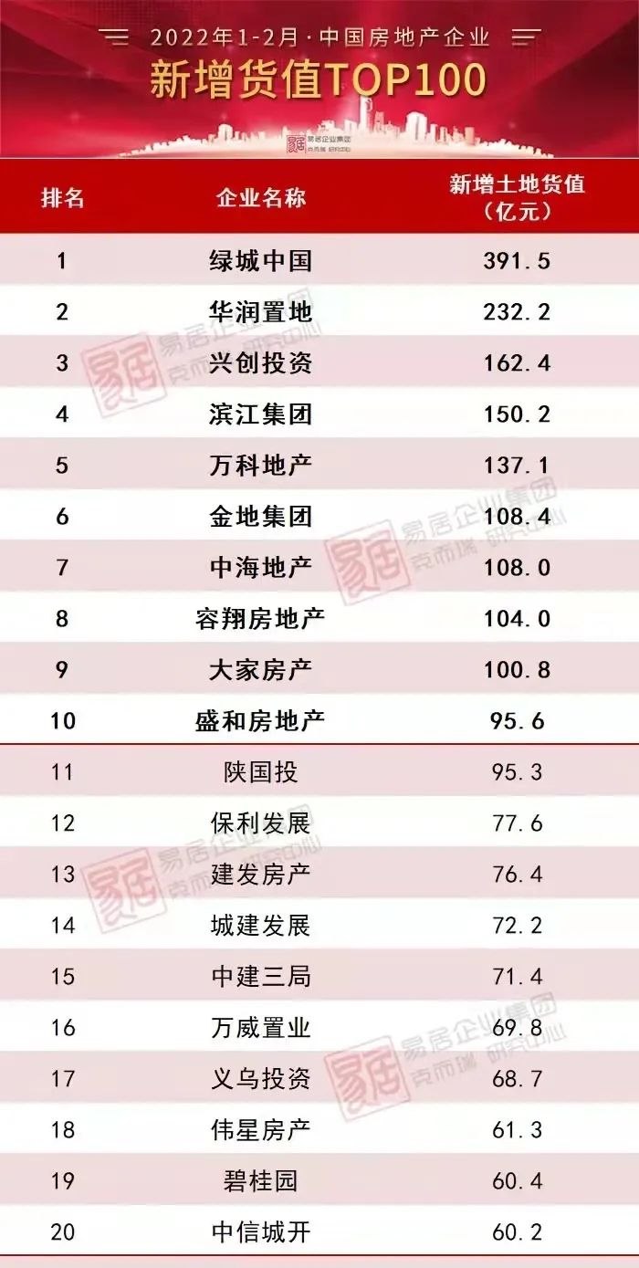 3月初,克而瑞發(fā)布了2022年1-2月房企新增貨值TOP100榜單。很多地產(chǎn)老炮們都會(huì)有種才疏學(xué)淺的感覺(jué):這份百?gòu)?qiáng)榜單上的大多數(shù)房企居然都都是第一次聽(tīng)說(shuō)。在這份榜單上,房地產(chǎn)銷售排行榜榜首的碧桂園也僅位列19位,龍湖位列24位,旭輝位列51位,新城位列63位。至于以前我們熟知的閩系房企、粵系房企、西南房企、北派房企,大都只派了代表來(lái),湊不出一支隊(duì)伍,或者說(shuō),他們?cè)撜铣梢恢ш?duì)伍,民企代表隊(duì)。與之相對(duì)應(yīng)的,則是地方國(guó)企的強(qiáng)勢(shì)崛起,各種城開(kāi)、城投、建設(shè)、投資公司魚貫而來(lái),只是尚無(wú)法分清他們是來(lái)托底客串,還是趁機(jī)抄底的。“今天的土儲(chǔ),就是明天的規(guī)模;有了規(guī)模,才有話語(yǔ)權(quán)”。如今這房地產(chǎn)行業(yè),新桃換舊符,不止游戲規(guī)則變了,連選手也都變了。