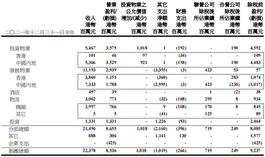 集團(tuán)內(nèi)地已落成綜合用途投資物業(yè)資產(chǎn)組合包括辦公室、零售、出租公寓和酒店,產(chǎn)生收入同比增長(zhǎng)21%至56.6 億港元,毛利同比增長(zhǎng)14%至35億港元。