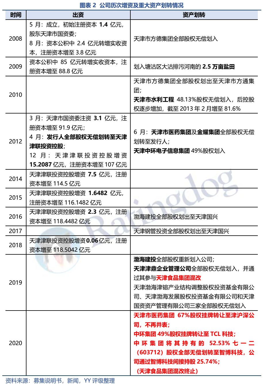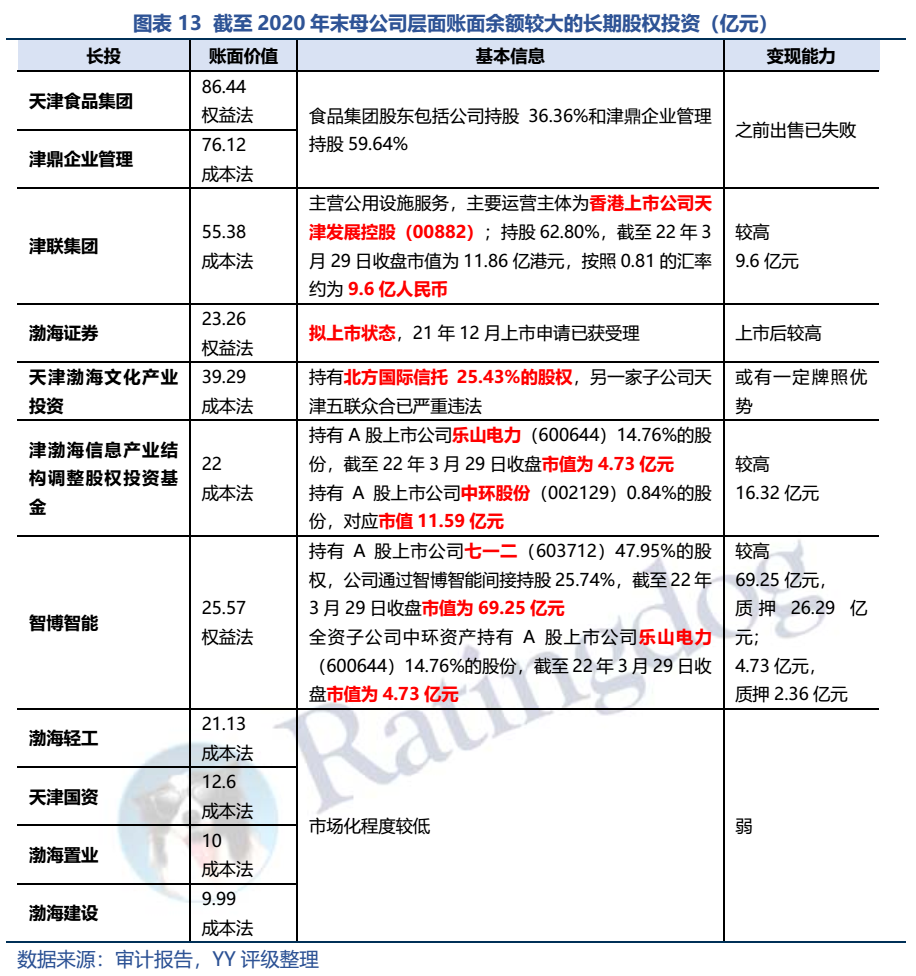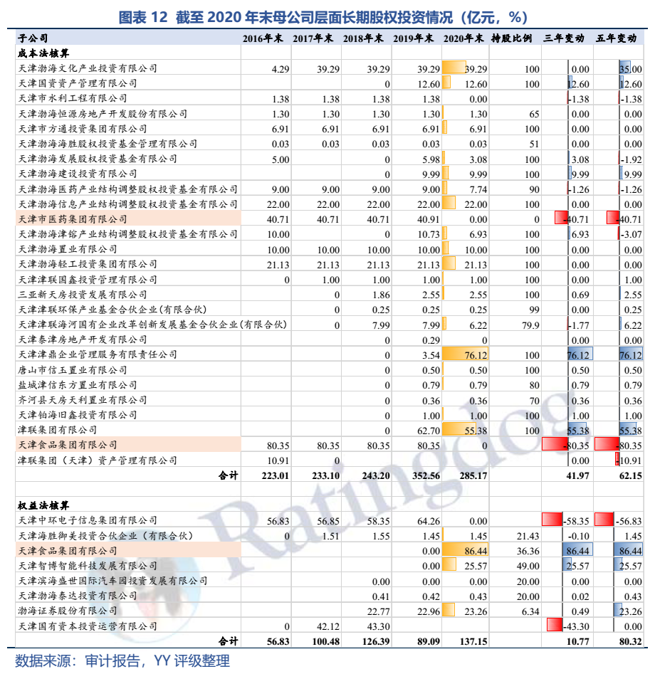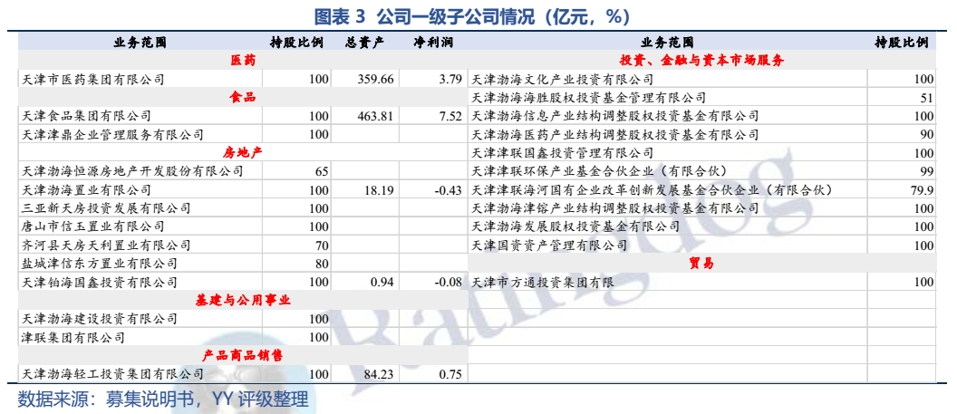 公司為天津市整合級國資運營平臺,子公司股權多依賴劃轉等,實際掌控力偏弱
