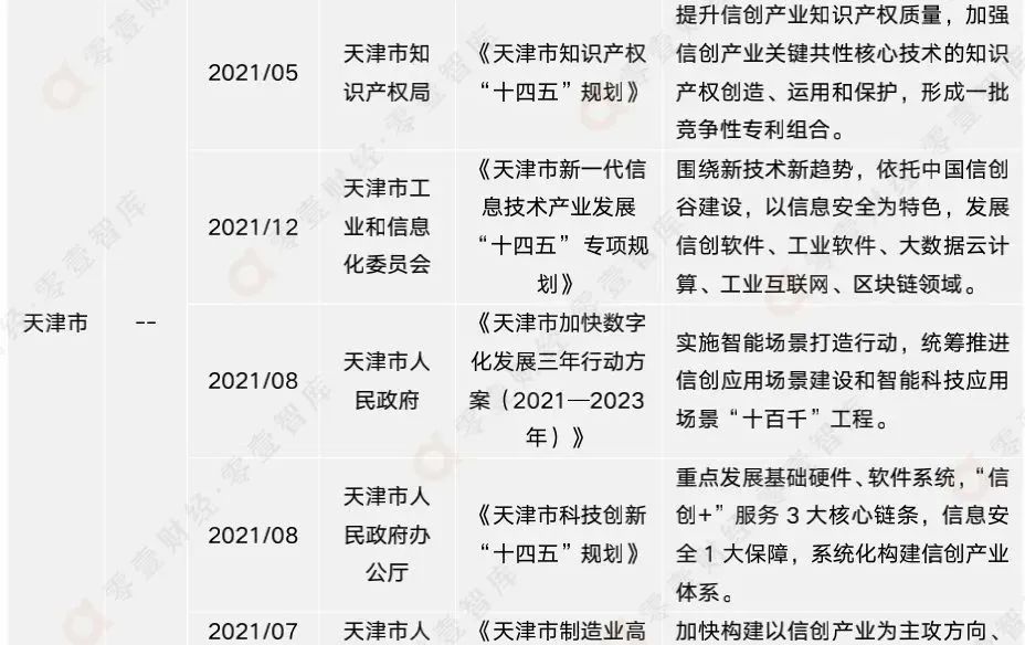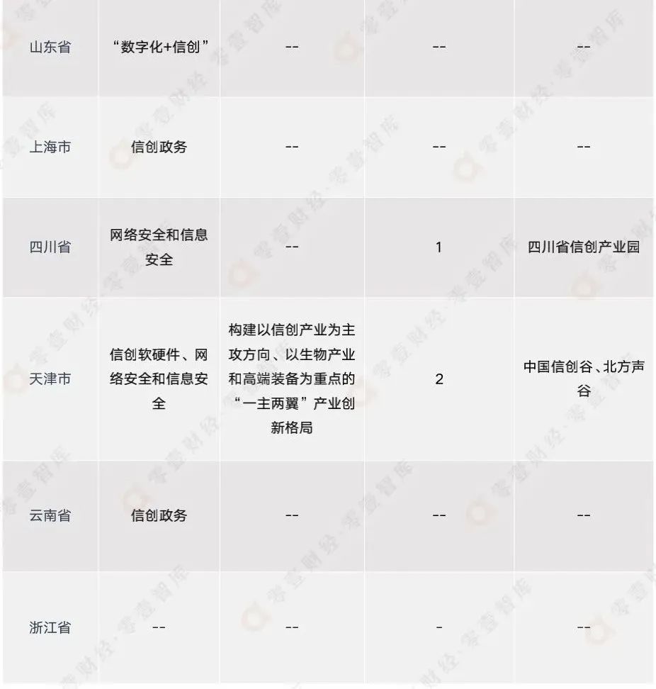 隨著信創(chuàng)發(fā)展到了一定階段,各地政府對(duì)當(dāng)?shù)匦艅?chuàng)產(chǎn)業(yè)發(fā)展要求以及路線不可避免地發(fā)生了改變。根據(jù)各地方政府近兩年來(lái)發(fā)布的最新的信創(chuàng)相關(guān)政策文件可以看出,以浙江省、北京市、四川省為代表的省級(jí)行政區(qū)因地制宜,明確提出在當(dāng)?shù)亟ㄔO(shè)信創(chuàng)基地,依托當(dāng)?shù)仄髽I(yè)、科研院所等優(yōu)勢(shì),在當(dāng)?shù)亟⑿艅?chuàng)生態(tài),避免在信創(chuàng)發(fā)展中后期可能存在的受制于人的情況。以天津市、山東省、安徽省為代表的省級(jí)行政區(qū)則加速發(fā)展信創(chuàng)硬軟件,推進(jìn)信創(chuàng)、人工智能、5G+等多熱門領(lǐng)域協(xié)同發(fā)展發(fā)展,力求在信息技術(shù)領(lǐng)域全方面、立體化發(fā)展。