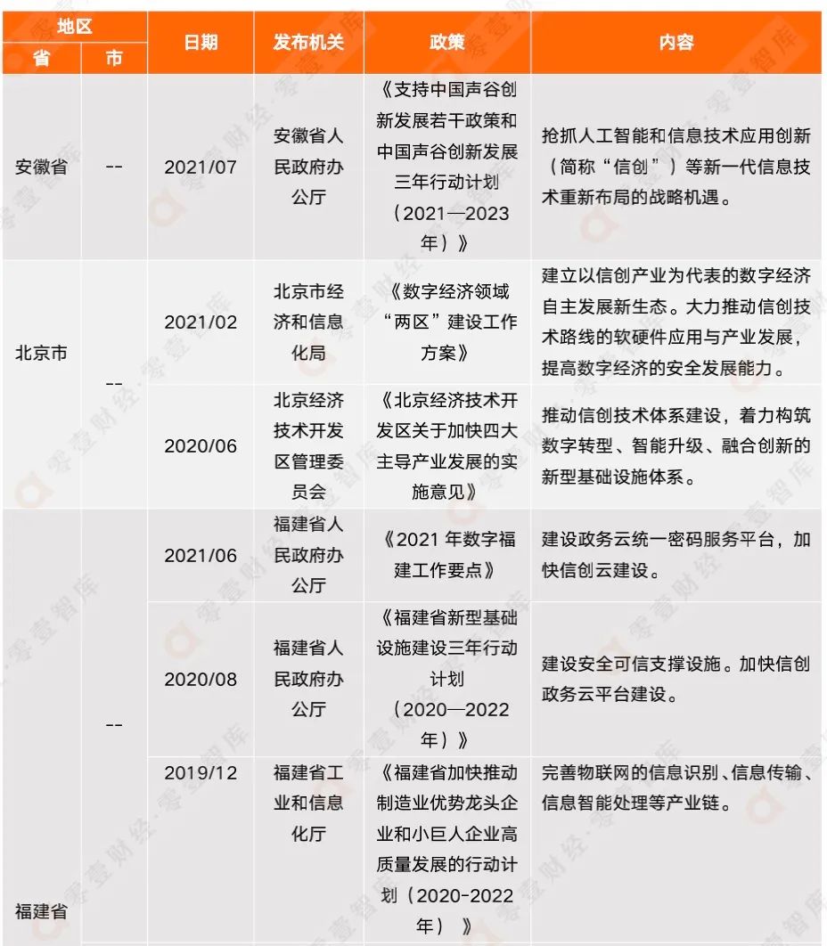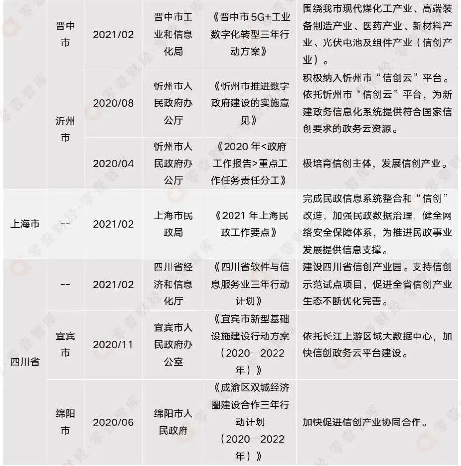 附錄二:全國(guó)各省市信創(chuàng)相關(guān)政策匯總(截至2021年12月)
