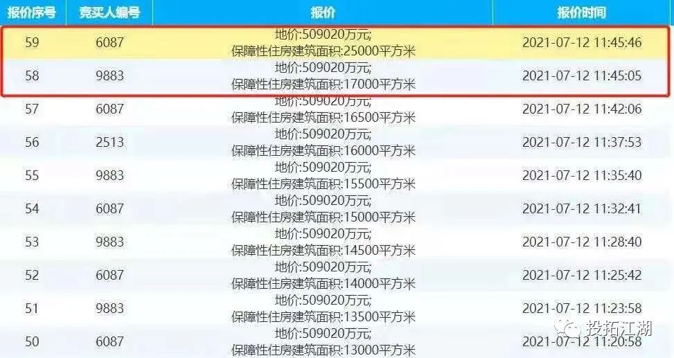 土地拍賣進(jìn)行的前一個(gè)小時(shí),大家都在按規(guī)則競(jìng)價(jià),一直競(jìng)價(jià)到509020萬(wàn)元。然后大家又花了一個(gè)小時(shí)競(jìng)無(wú)償移交保障性住房,可能是萬(wàn)科覺得這樣一直搞沒意思,想早點(diǎn)結(jié)束。在上午11時(shí)45分的時(shí)候,萬(wàn)科突然加價(jià),跳加了8000平米的無(wú)償移交,直接把無(wú)償移交保障性住房的面積,干到了25000平米,然后土拍結(jié)束了。
