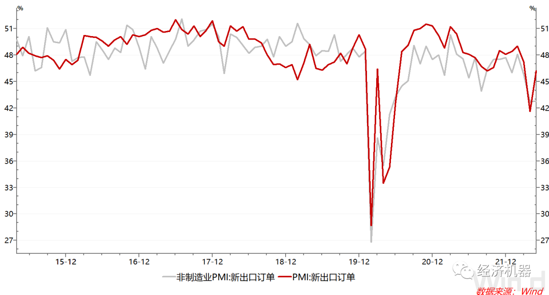 國內制造業新出口訂單則隨供應鏈好轉大幅回升。疊加政策積極支持和匯率貶值等因素,5月制造業出口訂單有大幅好轉,制造業PMI新出口訂單指數錄得46.2%,較上月提升4.6個百分點,不過仍未恢復到3月的水平。非制造業PMI新出口訂單指數則仍在低位,較4月基本持平,顯示需求基本沒有恢復(圖8)。這可能與非制造業更多依靠人力資本有關。