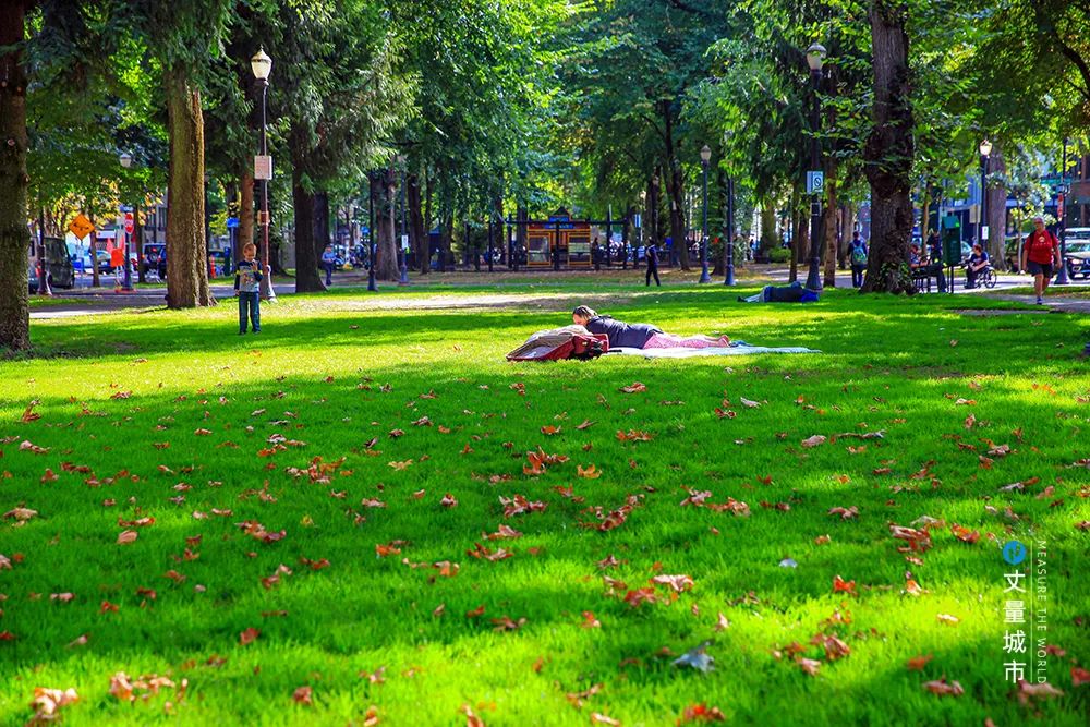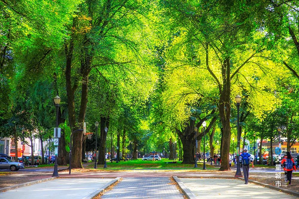 以波特蘭州立大學(xué)為盡頭的南方公園區(qū),是一個由眾多小街區(qū)串聯(lián)組成的長條形公園,幾乎占了半個波特蘭Downtown,可謂波特蘭的綠肺。